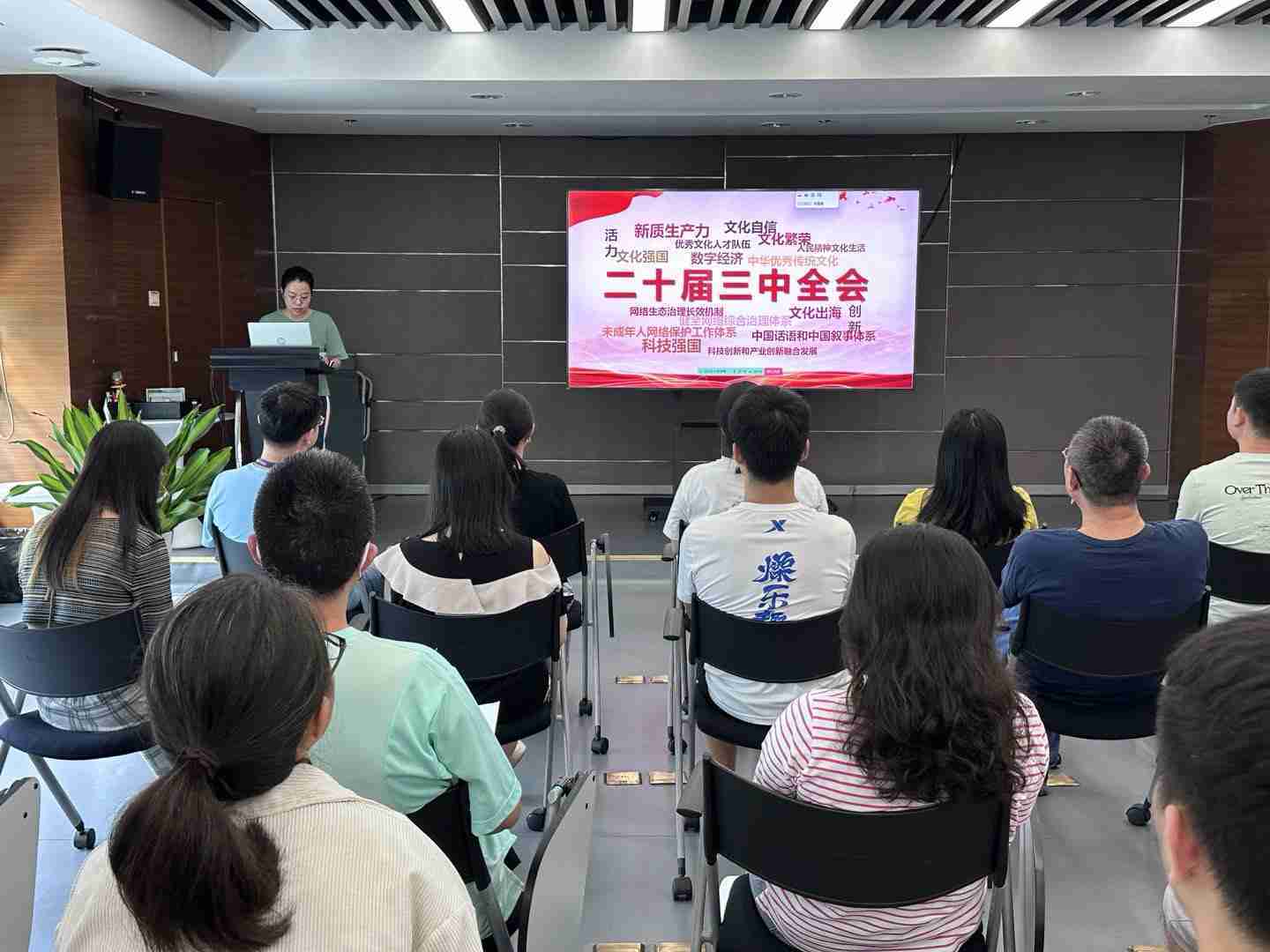 与会人员深入学习《决定》内容。。。党的二十届三中全会提出必须增强文化自信,,,发展社会主义先进文化,,弘扬革命文化,,传承中华优秀传统文化,,,,加快适应信息技术迅猛发展新形势,,,,构建更有效力的国际传播体系,,这为广大文化产业工作者指明了奋斗方向。。。。